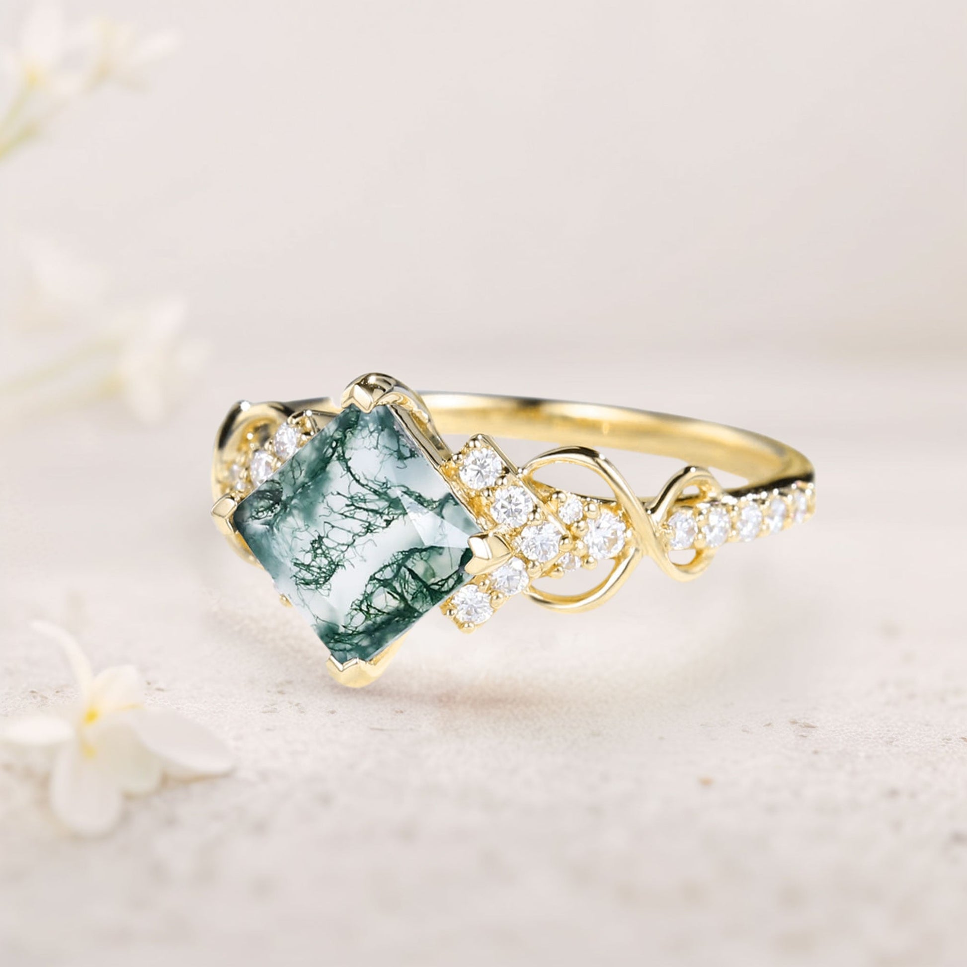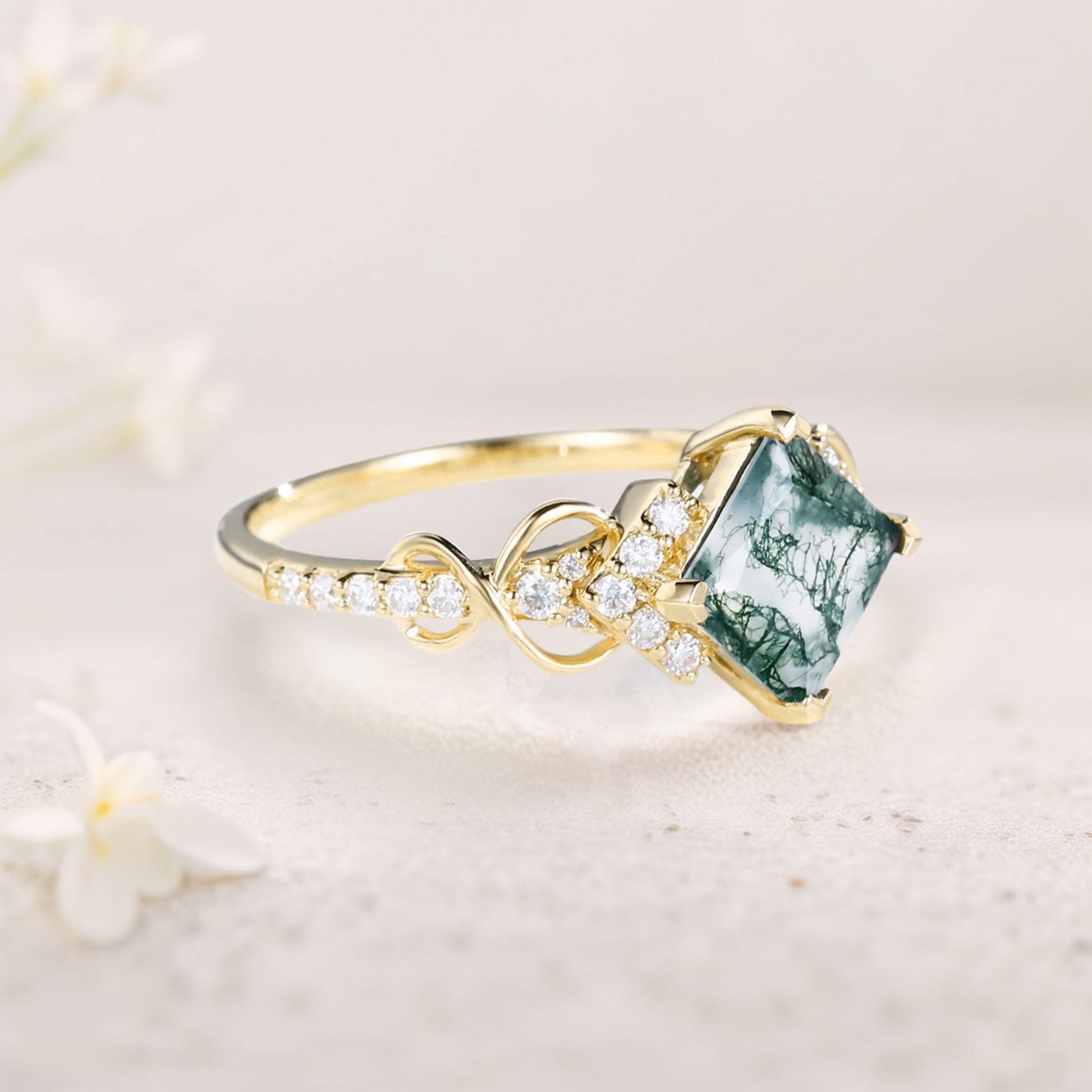 Vintage Princess Moss Agate Engagement Ring For Women